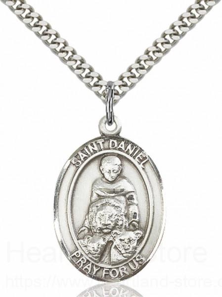 An oval shaped pendant with an image ofSt. Daniel in the center. There is a selection of chains to choose from.