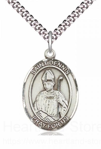 About this Men's Pewter Oval St. Dennis Medal + 20" Rhodium Plate Chain + Clasp
