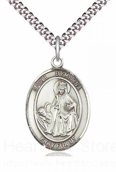 About this Men's Pewter Oval St. Dymphna Medal + 24" 2.4mm Rhodium Plate Chain + Clasp