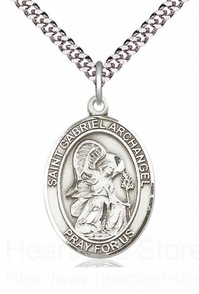 About this Men's Pewter Oval St. Gabriel the Archangel Medal + 20" Rhodium Plate Chain + Clasp