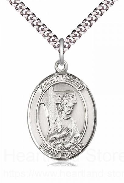 An oval shaped pendant with an image of St. Helen in the center. There is a selection of chains to choose from.