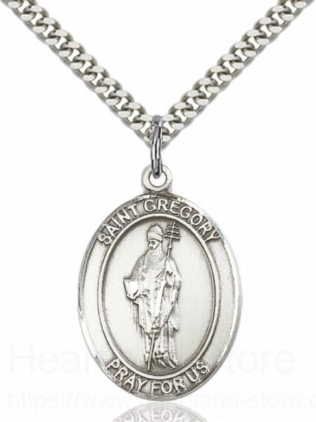 About this Men's Pewter Oval St. Gregory the Great Medal + 24" 2.4mm Rhodium Plate Endless Chain