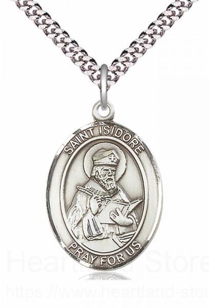 About this Men's Pewter Oval St. Isidore of Seville Medal + 20" Rhodium Plate Chain + Clasp