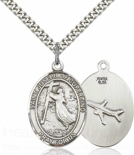 About this Men's Pewter Oval St. Joseph of Cupertino Medal + 20" Rhodium Plate Chain + Clasp