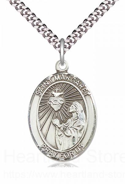About this Men's Pewter Oval St. Margaret Mary Alacoque Medal + 24" 2.4mm Rhodium Plate Endless Chain