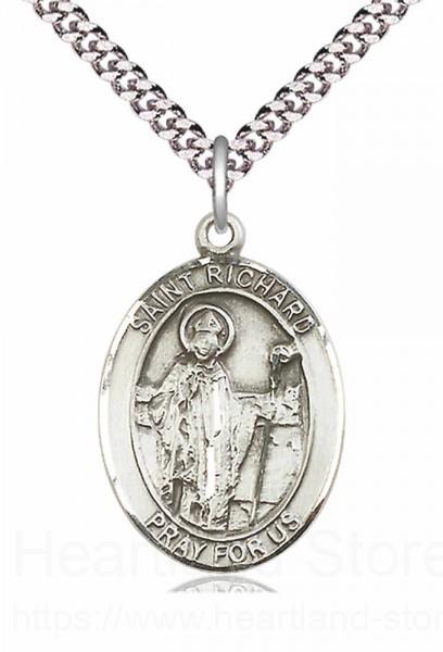 About this Men's Pewter Oval St. Richard Medal + 20" Rhodium Plate Chain + Clasp