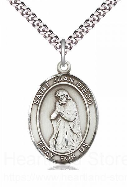 About this Men's Pewter Oval St. Juan Diego Medal + 24" 2.4mm Rhodium Plate Chain + Clasp