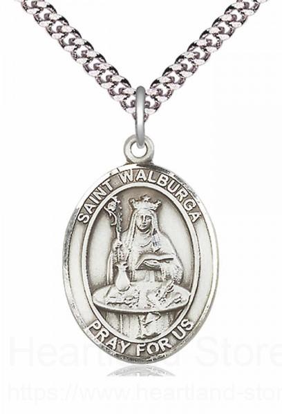 About this Men's Pewter Oval St. Walburga Medal + 20" Rhodium Plate Chain + Clasp