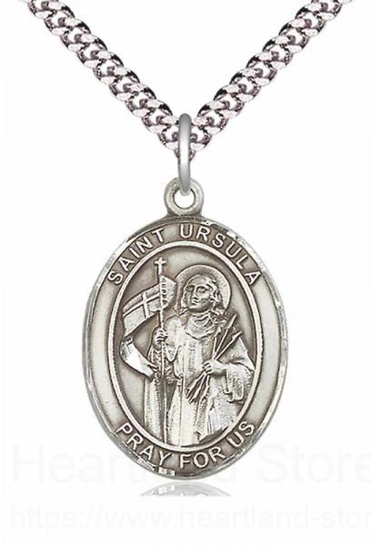 About this Men's Pewter Oval St. Ursula Medal + 24" 2.4mm Rhodium Plate Chain + Clasp