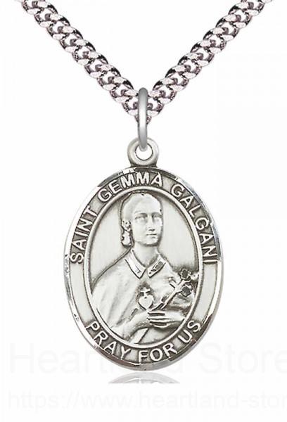 About this Men's Pewter Oval St. Gemma Galgani Medal + 20" Rhodium Plate Chain + Clasp