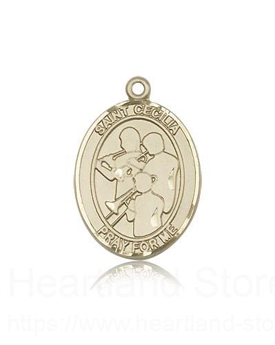 This St. Cecilia Marching Band Pendant is made of 14 Karat Gold and is approximately the size of a quarter. The jewelry pendant is sold individually and does not come with a chain. All medals are gift boxed in a beautiful blue velvet hinged jewelry gift box.