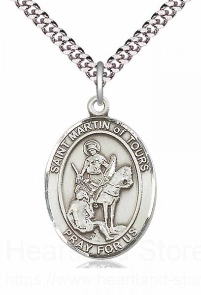 About this Men's Pewter Oval St. Martin of Tours Medal + 24" 2.4mm Rhodium Plate Chain + Clasp