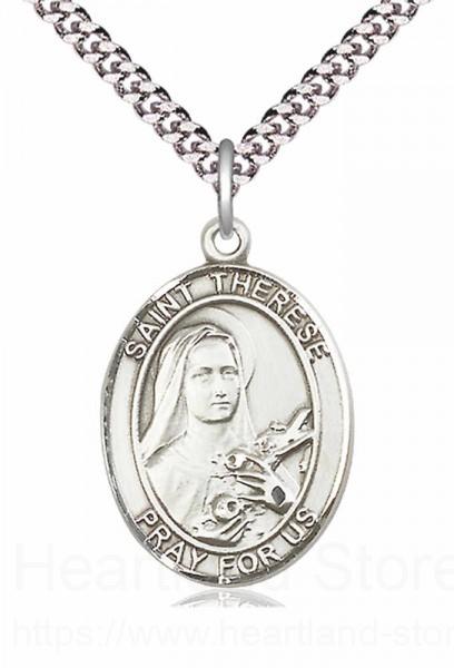 About this Men's Pewter Oval St. Therese of Lisieux Medal + 24" 2.4mm Rhodium Plate Chain + Clasp