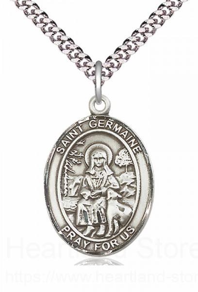 About this Men's Pewter Oval St. Germaine Cousin Medal + 24" 2.4mm Rhodium Plate Chain + Clasp