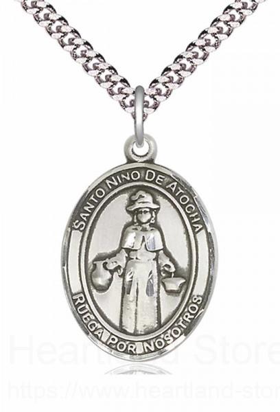 About this Men's Pewter Oval St. Nino De Atocha Medal + 20" Rhodium Plate Chain + Clasp