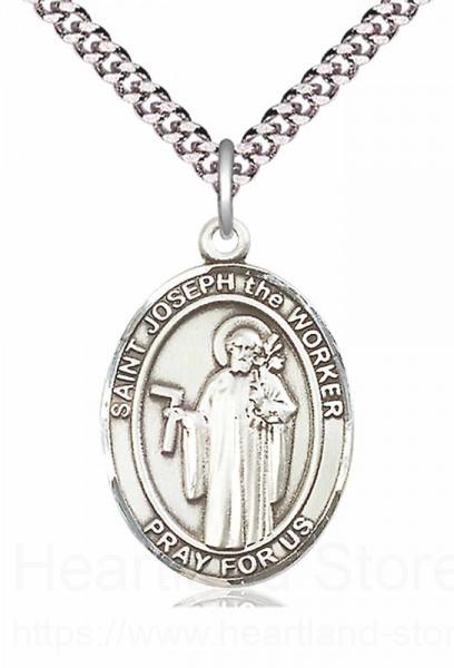 About this Men's Pewter Oval St. Joseph the Worker Medal + 20" Rhodium Plate Chain + Clasp