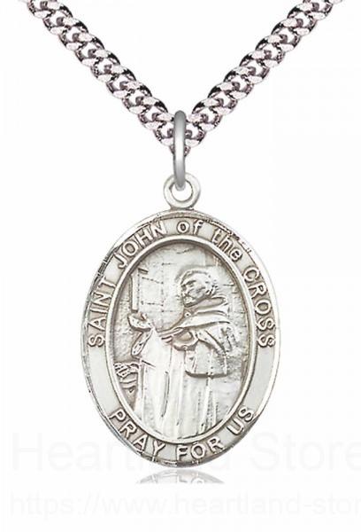 About this Men's Pewter Oval St. John of the Cross Medal + 20" Rhodium Plate Chain + Clasp