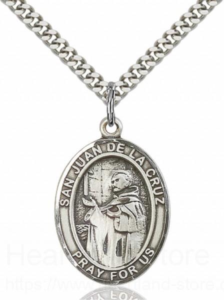 About this Men's Pewter Oval San Juan De La Cruz Medal + 24" 2.4mm Rhodium Plate Chain + Clasp