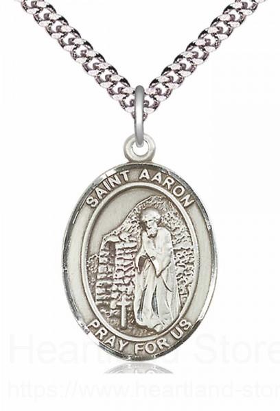About this Men's Pewter Oval St. Aaron Medal + 24" 2.4mm Rhodium Plate Chain + Clasp
