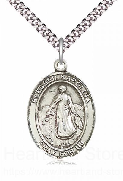 About this Men's Pewter Oval Blessed Karolina Kozkowna Medal + 24" 2.4mm Rhodium Plate Endless Chain