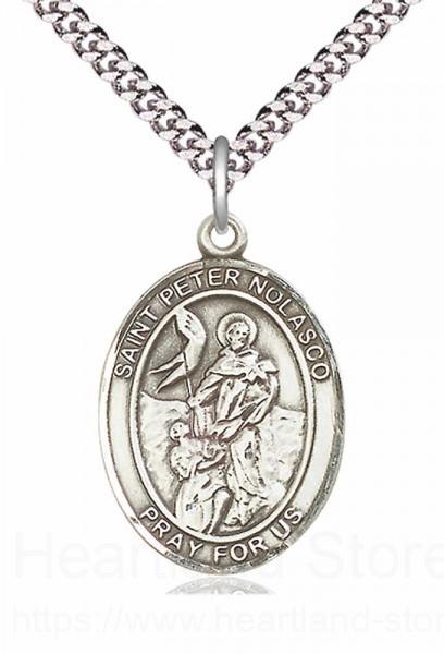 About this Men's Pewter Oval St. Peter Nolasco Medal + 20" Rhodium Plate Chain + Clasp