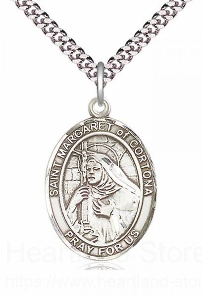 About this Men's Pewter Oval St. Margaret of Cortona Medal + 24" 2.4mm Rhodium Plate Endless Chain