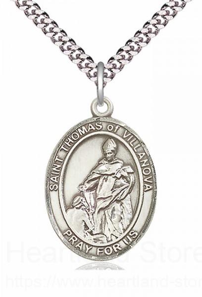Medal with 24" rhodium plated brass heavy curb chain with lobster clasp