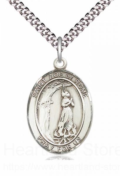 About this Men's Pewter Oval St. Zoe of Rome Medal + 24" 2.4mm Rhodium Plate Endless Chain