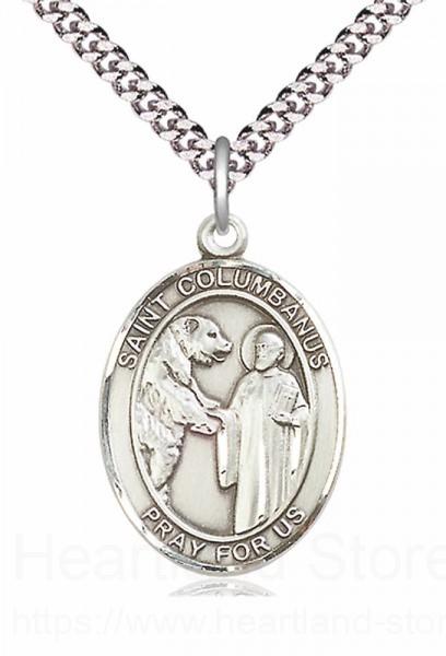 About this Men's Pewter Oval St. Columbanus Medal + 24" 2.4mm Rhodium Plate Chain + Clasp