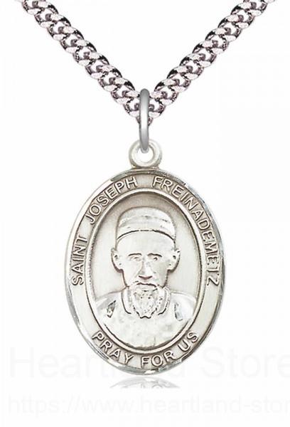 About this Men's Pewter Oval St. Joseph Freinademetz Medal + 24" 2.4mm Rhodium Plate Endless Chain