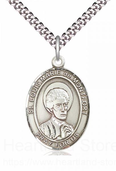 About this Men's Pewter Oval St. Louis Marie De Montfort Medal + 24" 2.4mm Rhodium Plate Chain + Clasp