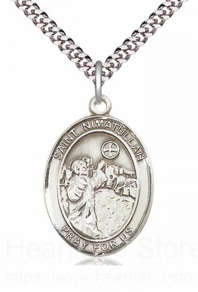 About this Men's Pewter Oval St. Nimatullah Medal + 20" Rhodium Plate Chain + Clasp