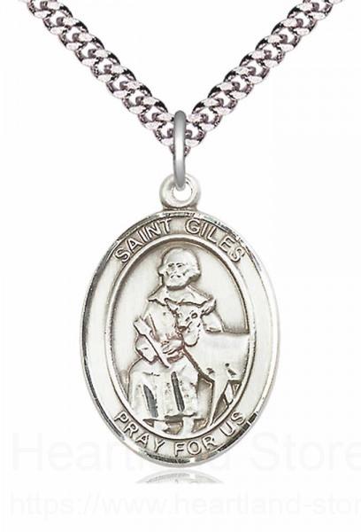 About this Men's Pewter Oval St. Giles Medal + 24" 2.4mm Rhodium Plate Endless Chain