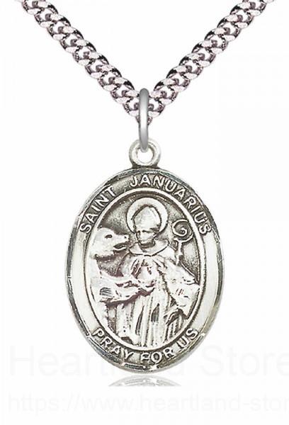 About this Men's Pewter Oval St. Januarius Medal + 20" Rhodium Plate Chain + Clasp