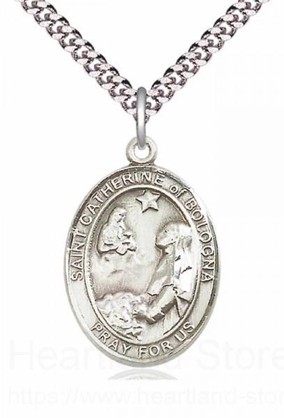 About this Men's Pewter Oval St. Catherine of Bologna Medal + 20" Rhodium Plate Chain + Clasp