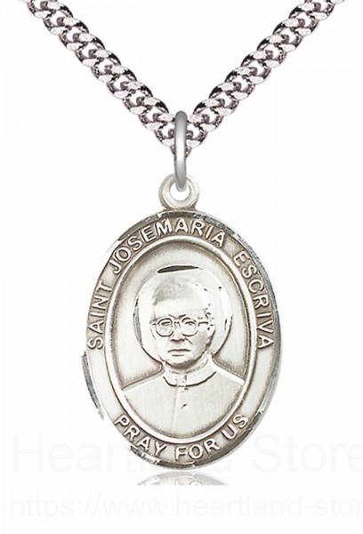 About this Men's Pewter Oval St. Josemaria Escriva Medal + 20" Rhodium Plate Chain + Clasp