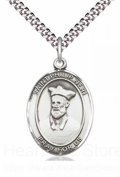 About this Men's Pewter Oval St. Philip Neri Medal + 20" Rhodium Plate Chain + Clasp