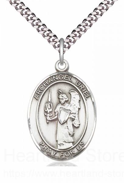 About this Men's Pewter Oval St. Uriel Medal + 20" Rhodium Plate Chain + Clasp