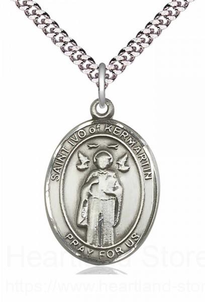 About this Men's Pewter Oval St. Ivo Medal + 24" 2.4mm Rhodium Plate Endless Chain