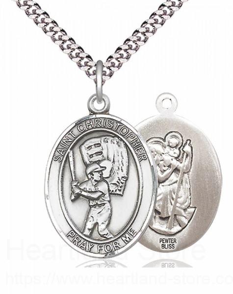 About this Men's Pewter Oval St. Christopher Baseball Medal + 24" 2.4mm Rhodium Plate Chain + Clasp