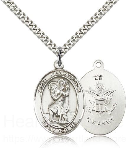 St. Christopher Army Medal This St. Christopher Army Pendant is made of sterling silver and is approximately the size of a quarter.