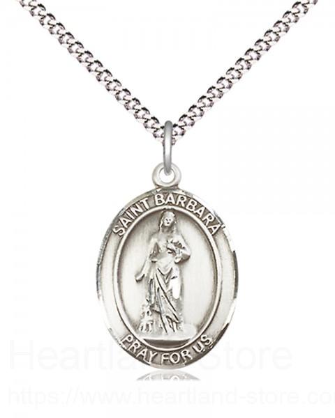 About this Women's Pewter Oval St. Barbara Medal + 18" Rhodium Plated Medium Chain + Clasp