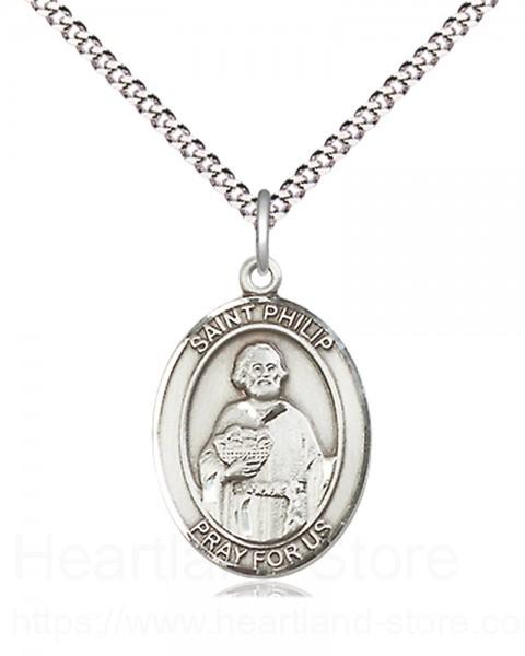 About this Women's Pewter Oval St. Philip the Apostle Medal + 18" Rhodium Plated Medium Chain + Clasp