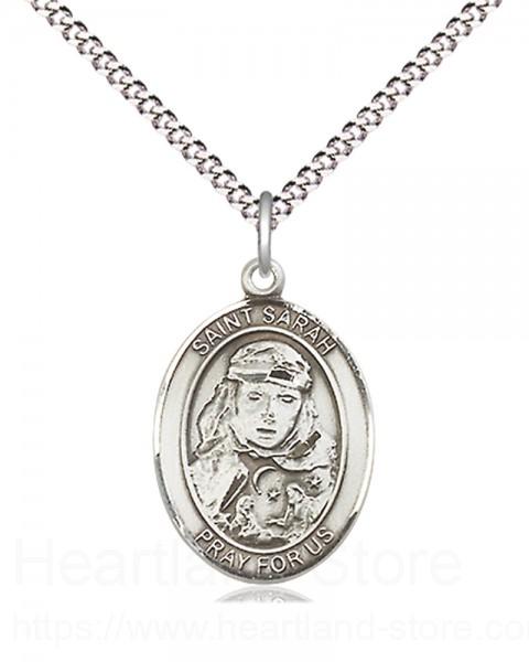 About this Women's Pewter Oval St. Sarah Medal + 18" Rhodium Plated Heavy Chain + Clasp