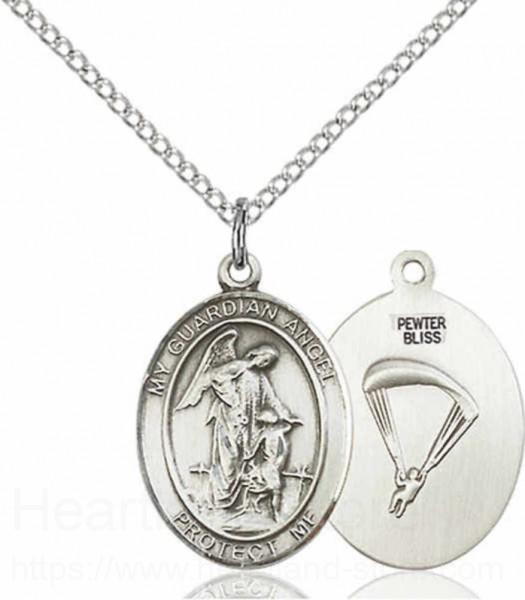 About this Women's Pewter Oval Guardian Angel Paratrooper Medal + 18" Rhodium Plated Heavy Chain + Clasp