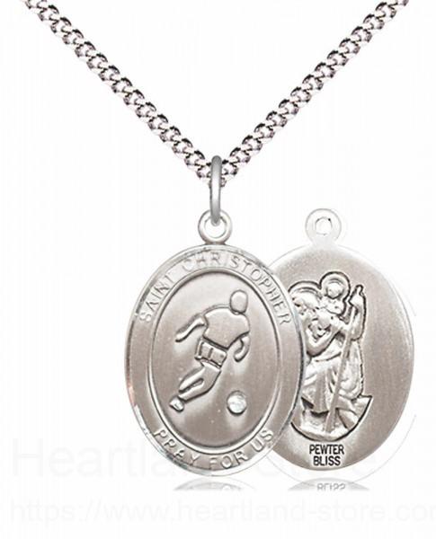 About this Boy's Pewter Oval St. Christopher Soccer Medal + 18" Rhodium Plated Heavy Chain + Clasp