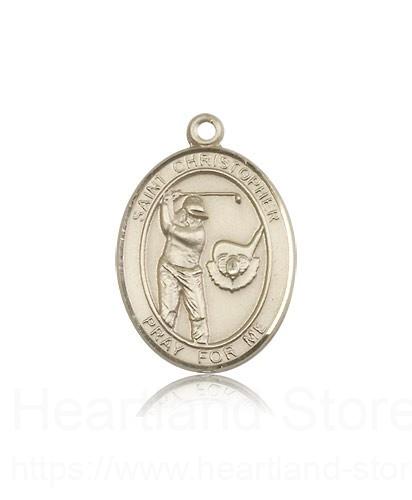 This St. Christopher Golf Pendant is made of 14 Karat Gold and is approximately the size of a quarter. The jewelry pendant is sold individually and does not come with a chain. All medals are gift boxed in a beautiful blue velvet hinged jewelry gift box.
