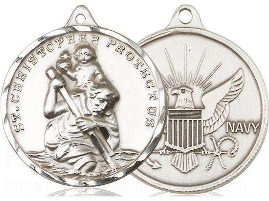 About this Large St. Christopher Navy Medal, Sterling Silver + No Chain