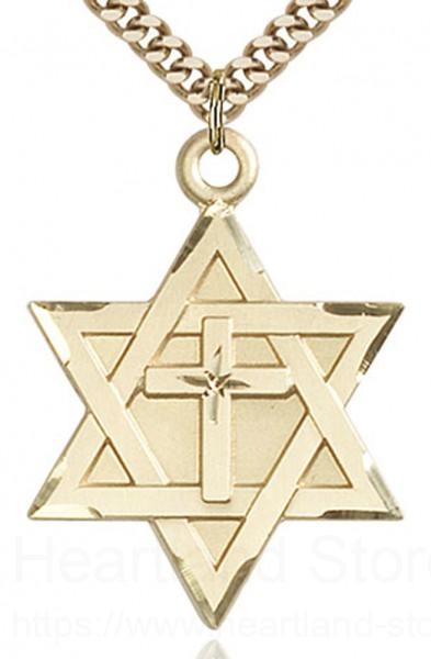 This Star of David with Cross Pendant measures approximately the size of a quarter. All medals are gift boxed in a velvet jewelry box ready for gift giving.