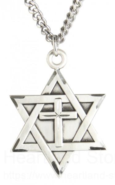 This large Star of David with Cross Pendant is made of sterling silver and is 1ΒΌ" high.